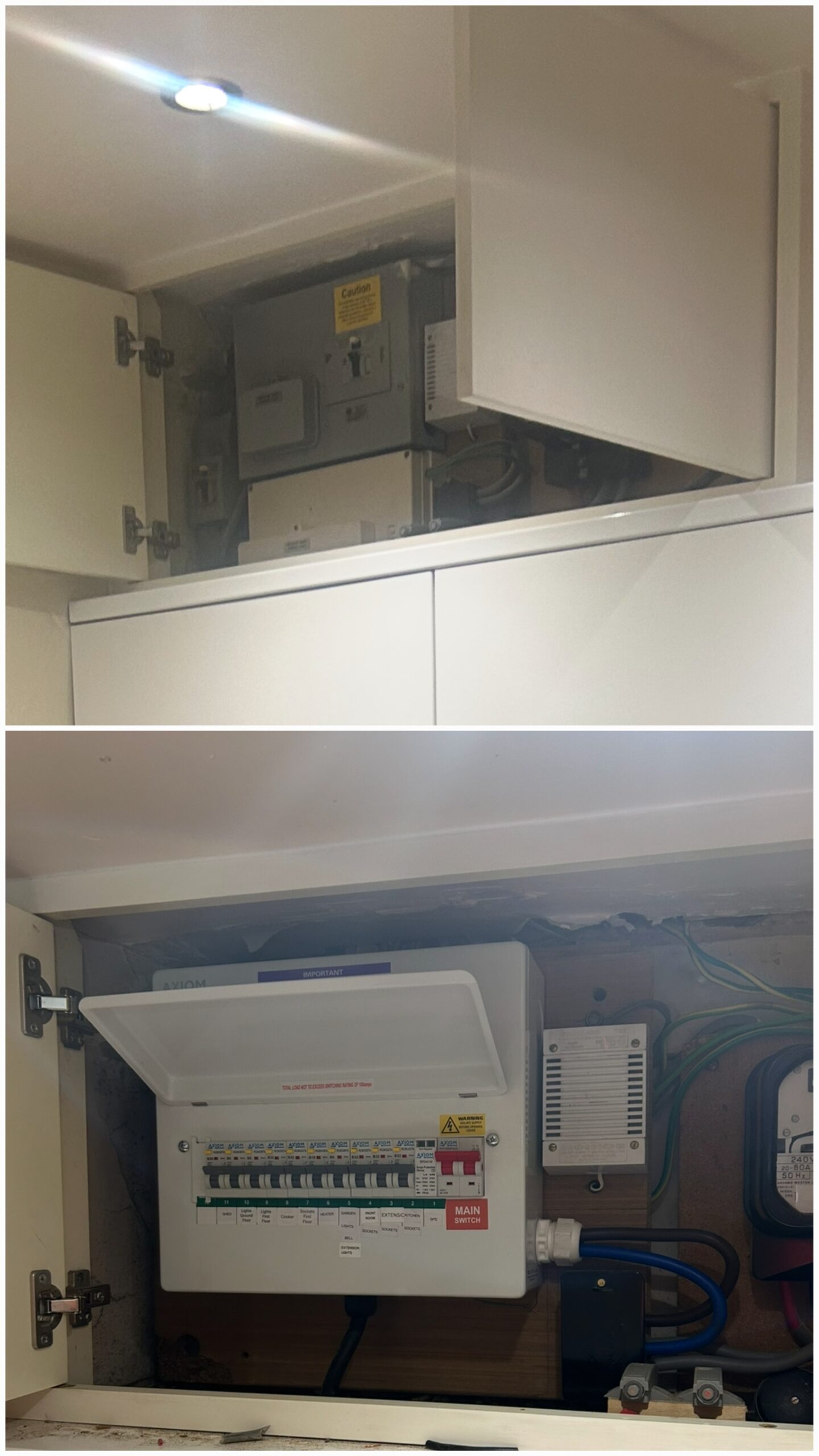 Before starting any work, the power supply was isolated to make the area safe to work on. The outdated fuse box was then carefully removed without disrupting the rest of the installation.